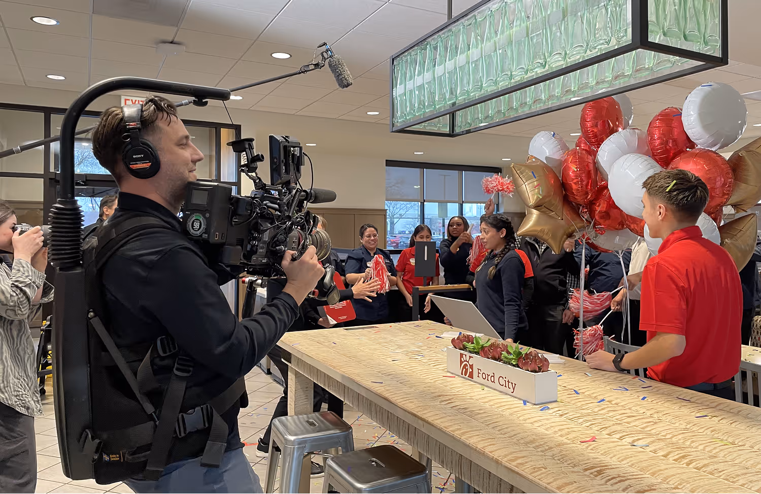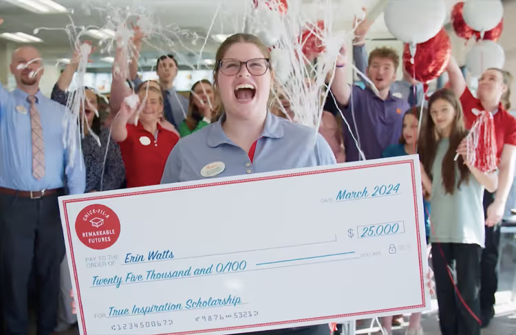 That balance of empathy and efficiency was tested on one of Hometeam’s most ambitious collaborations: Chick-fil-A’s “Remarkable Futures” series. Described by Bloch as a “massive logistical heist,” the project involved a small core team of CFA clients and Bray traversing the country, delivering surprise $25,000 scholarships to Chick-fil-A team members, and capturing those life-changing moments in real time.